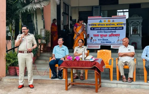 कोल्हापूर, दि. 17 : मुख्यमंत्री प्रशासकीय गतिमानता अभियानांतर्गत कोल्हापूर जिल्हा प्रशासनामार्फत राबविल्या जाणाऱ्या ‘100 दिवस 100 शाळा’ या महत्त्वाकांक्षी उपक्रमांतर्गत रस्ता सुरक्षा जनजागृती मोहीम जोमाने सुरू आहे. प्रादेशिक परिवहन कार्यालय, कोल्हापूर यांच्या समन्वयाने ही मोहीम राबविली जात आहे.