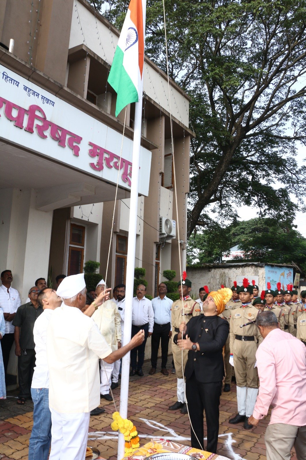 मुरगूड नगरपरिषदेच्या प्रांगणातही प्रशासक तथा मुख्याधिकारी मा. श्री. संदिप घार्गे यांच्या हस्ते ध्वजारोहन पार पडले . तर मुरगूड बाजारपेठेतील ” श्री . व्यापारी नागरी सहकारी पतसंस्थेच्या प्रांगणात डॉ. संजय रामसे यांच्या शुभहस्ते ध्वजारोहन करण्यात आले. याप्रसंगी शिवराज विद्यालयाचे शिक्षक व विद्यार्थिनिनीं राष्ट्रगीत गाईले.