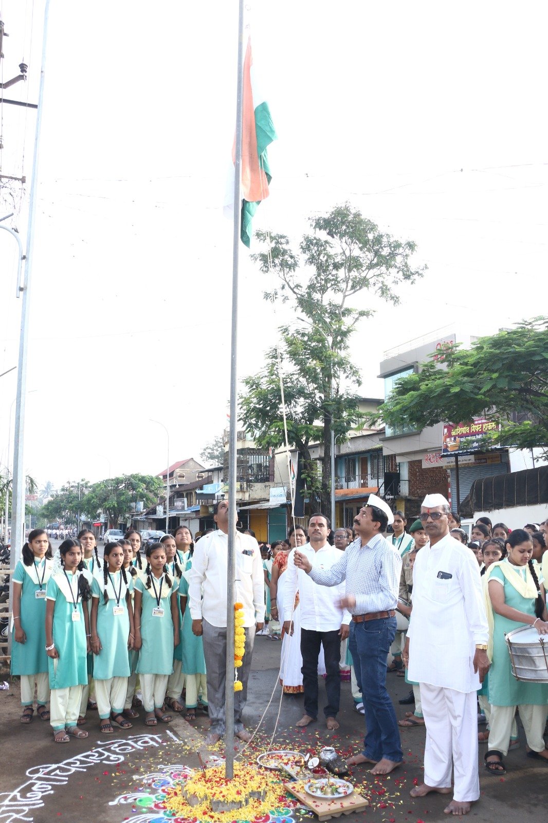 मुरगूड -शहर जेष्ठ नागरीक संघाच्या प्रांगणात स्वातंत्र्य सैनिकाचे वारसदार व_संघाचे जेष्ठ सदस्य श्री . तुकाराम भारमल यांच्या शुभहस्ते ध्वजारोहन करण्यात आले. भारतीय स्वातंत्र्याचा अमृतमहोत्सवानिमित्य उपस्थितानां जिलेबीचे वाटप करुन आनंद व्यक्त करण्यात आला.