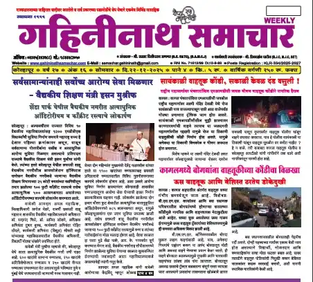 गहिनीनाथ समाचार अंक १४ दिनांक ०८-१२-२०२५ रौप्यमहोत्सवी गहिनीनाथ समाचार गेली २७ वर्ष अखंडित दर सोमवारी प्रकाशित होत असून गेले २२ वर्ष शासनमान्य जाहिरात यादीवर आहे. देशातील घडामोडी तसेच परिसरातील घटना निर्भीडपणे मांडण्याचा आमचा प्रयत्न असतो. शिक्षण, आरोग्य, पर्यावरण, राजकारण, अंधश्रद्धा, शेती, युवकांच्या समस्या अशा अनेक प्रश्नावर ‘गहिनीनाथ समाचार’ मध्ये लिहिले जाते. प्रबोधनात्मक अनेक लेखावर चांगल्या … Read more