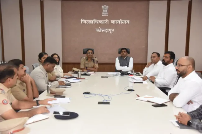 कोल्हापूर : या वर्षीचा नवरात्रोत्सव दि. २४ सप्टेंबर ते २ ऑक्टोबर दरम्यान असून जिल्हा प्रशासनाकडून तयारीच्या अनुषंगाने नियोजन बैठक घेण्यात आली. यावेळी जिल्हाधिकारी अमोल येडगे यांनी भाविकांसाठी नवरात्रोत्सवात चांगल्या सुविधा देण्याचे निर्देश संबंधित सर्व विभागांना दिले. ते म्हणाले, वाहतूक कोंडी टाळण्यासाठी वाहतुक मार्गावर योग्य पद्धतीने उपाययोजना राबवा आणि शहरातील गर्दी टाळण्यासाठी बाहेर पुरेशी वाहनतळ व्यवस्था करा. याबाबत दोन दिवसात निर्णय घेवून जागा निश्चिती आणि आवश्यक कामे पूर्ण करा. नवरात्रोत्सवात करावयाच्या कामांच्या अनुषंगाने तसेच आवश्यक नियोजनासाठी जिल्हाधिकारी कार्यालयात शाहूजी सभागृहात बैठक घेण्यात आली.
