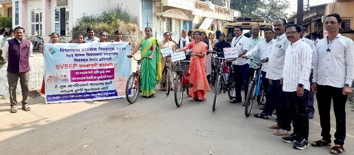 यावेळी श्री दौलतराव निकम माध्यमिक विद्यालय व विद्या मंदिर या शाळेच्या मुला-मुलींनी गावातून काढलेल्या सायकल रॅलीत सहभाग घेतला. लोकशाहीर राजू भोरे व सहकारी यांनी मतदार जनजागृतीपर गीत गायन केले. यावेळी दुकानदार , ग्रामस्थ यांना गटशिक्षणाधिकारी सौ.कासोटे यांनी समक्ष भेटून मतदान करण्याचे आवाहनही केले.
