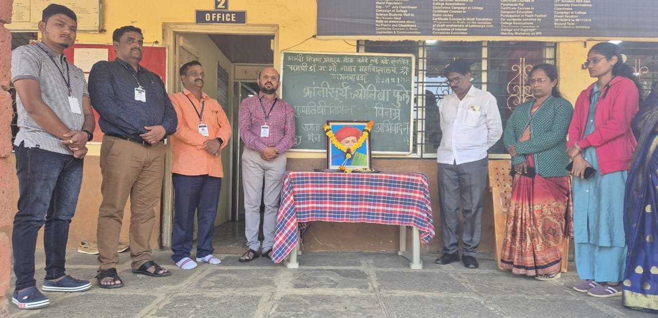 आनंदी शिक्षण प्रसारक मंडळ कळंबे तर्फ कळे संचलित , गगनबावडा येथील पद्मश्री डॉ. ग. गो. जाधव महाविद्यालयात राष्ट्रीय सेवा योजनेच्या वतीने महात्मा ज्योतिबा फुले यांच्या १३५ व्या पुण्यतिथीनिमित्त त्यांना अभिवादन करण्यात आले. प्रथम मान्यवरांच्या हस्ते प्रतिमेला पुष्पहार अर्पण करण्यात आला.यावेळी प्रा. डॉ .नामदेव मोळे यांनी महात्मा फुलेंच्या शेतकऱ्याचा आसूड, सार्वजनिक सत्यधर्म, गुलामगिरी, अशा लेखन साहित्य विषयी सविस्तर माहिती दिली.