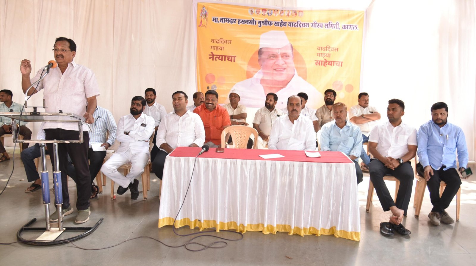 भाषणात श्री. माने पुढे म्हणाले, गेल्या वर्षी कमी पाऊस पडल्यामुळे निम्म्याहून अधिक महाराष्ट्र दुष्काळाच्या झळांमध्ये होरपळत आहे. त्यामुळे, पालकमंत्री हसनसाहेब मुश्रीफ यांच्या वाढदिवसाच्या निमित्ताने पाणी बचतीचा संदेशही घरोघरी द्या. शेतीच्या पाण्यासह पिण्याचे पाणीही काटकसरीने वापरण्याची जनजागृती समाजात करा, असेही ते म्हणाले.