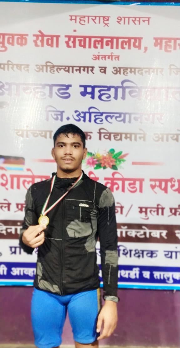 कागल (विक्रांत कोरे) : जिल्हा क्रीडा कार्यालय अहिल्यानगर याच्या संयुक्त विद्यमानाने घेण्यात आलेल्या शासकीय राज्यस्तरीय स्पर्धेचे आयोजन बाबूजी आव्हाड महाविद्यालय पाथर्डी येथे करण्यात आले होते.या स्पर्धेमध्ये कागलच्या डी आर माने महाविद्यालयाचा विद्यार्थी कु. जय संदीप भांडवले यांने ७४ किलो वजन गटात प्रथम क्रमांक प्राप्त करून सुवर्ण पदक प्राप्त केले.