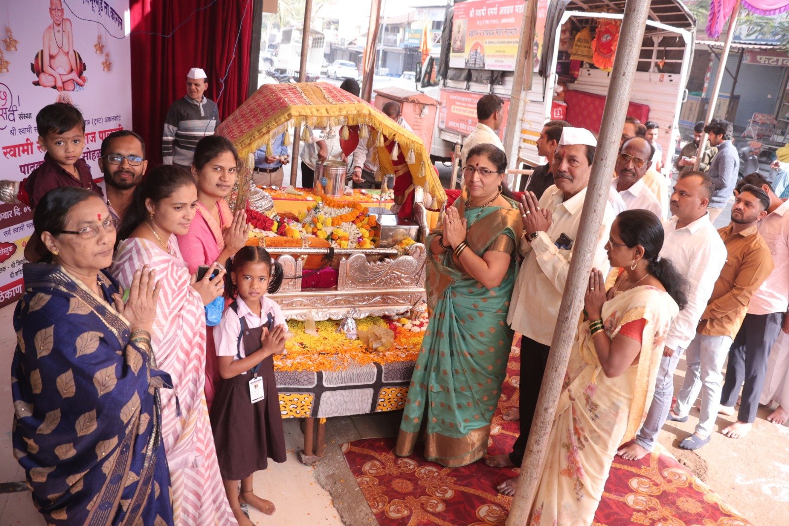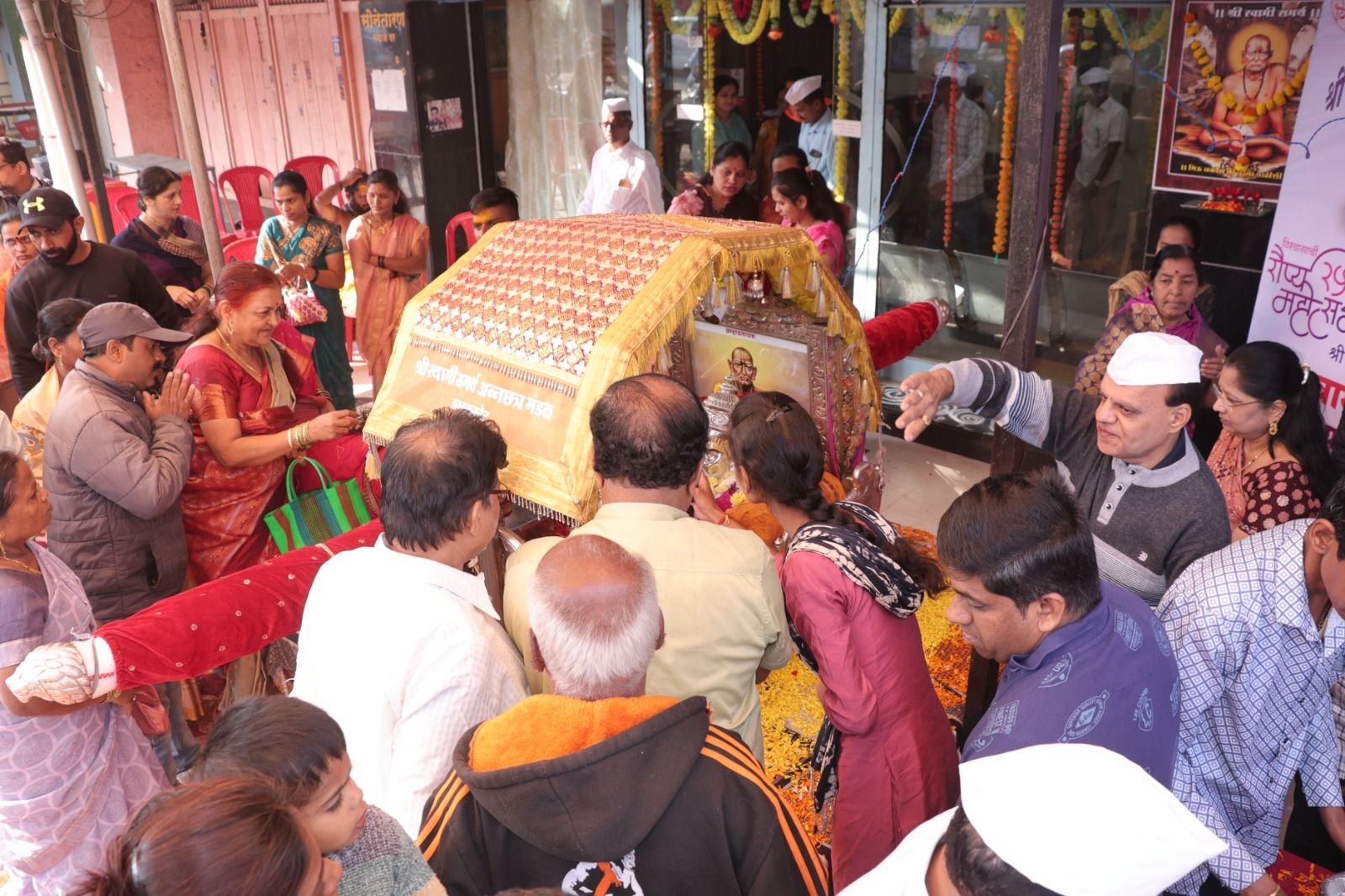 यावेळी अक्कलकोट येथिल स्वामी समर्थ महाराज व पादुकांचे स्वागत संस्थेचे चेअरमन किरण गवाणकर , व्हा . चेअरमन प्रकाश सणगर व संचालकानी केले.