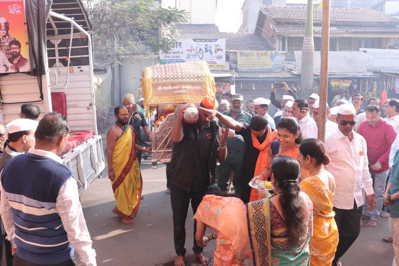 मुरगूड ( शशी दरेकर ) : मुरगूड ता . कागल येथिल रौप्यमहोत्सवी श्री . व्यापारी नागरी सहकारी पतसंस्थेच्या प्रांगणात शुक्रवार ९ जानेवारी २०२६ रोजी सकाळी ८ .३० ते ११ .३० या वेळेत श्री . स्वामी समर्थ महाराज पालखी पादुका परिक्रमा सोहळा, पादुकापूजन , श्रींच्या आरतीने उत्साहाच्या व भक्तीमय वातावरणात संपन्न झाला.