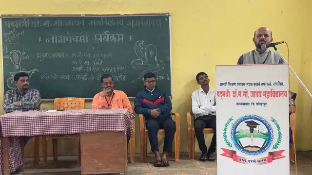 स्वागत व प्रास्ताविक – प्रा. अरुण गावकर यांनी केले. भारतीय संस्कृतीतील सणांचे महत्त्व आणि वन्य सहजीवन याबाबत प्रा. सौ.देवयानी पारगांवकर यांनी माहिती विशद केली. प्रा. अक्षय कांबळे यांनी मनोगत व्यक्त केले. यावेळी महाविदयालयीन युवतींनी वन्यजीव संवर्धनाबद्दलची लोकगीते “चल गं सये वारुळाला, आला नागपंचमीचा सण अशी लोकगीते फेर धरून गायली.